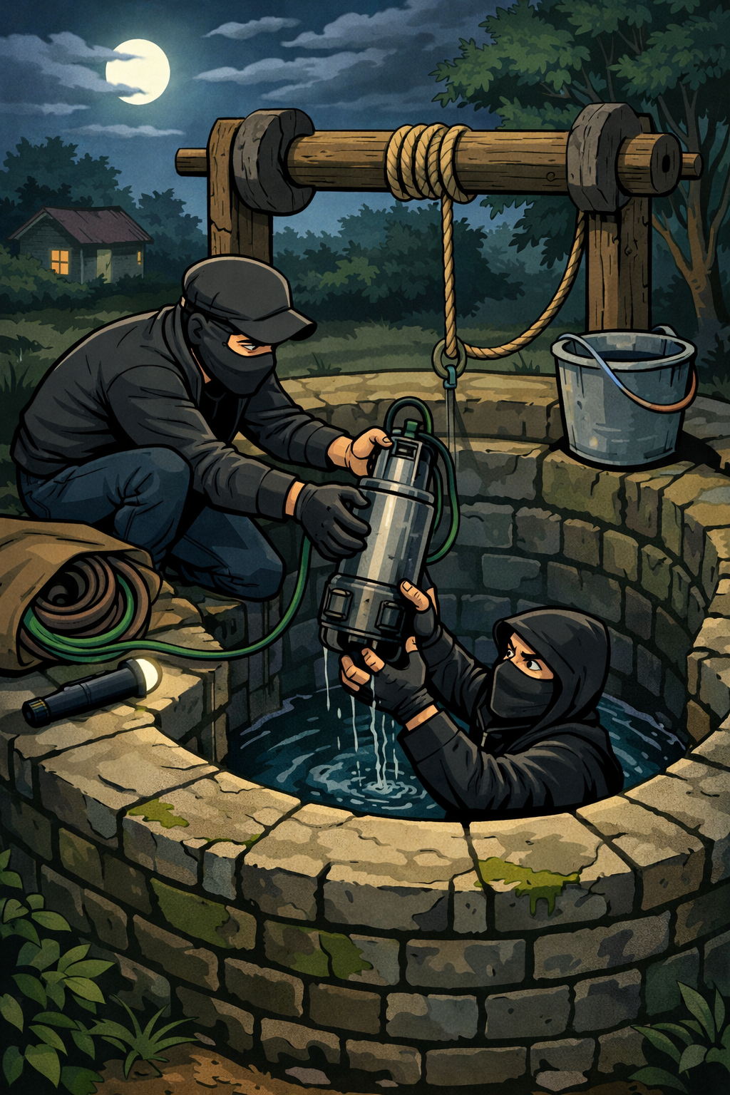 दिनांक ०७ जानेवारी २०२६ रोजी पहाटे सुमारे ३.०० वाजेपर्यंत फिर्यादींच्या वाटेकऱ्याने शेतात पाणी दिले होते. त्यानंतर रात्री २३.०० वाजण्याच्या सुमारास पुन्हा पाणी देण्यासाठी गेल्यावर मोटरला जोडलेला काळा पाईप कापलेला तसेच वायर कट केलेली असल्याचे निदर्शनास आले. विहिरीत पाहणी केली असता मोटर व पाईप गायब असल्याचे आढळून आले.